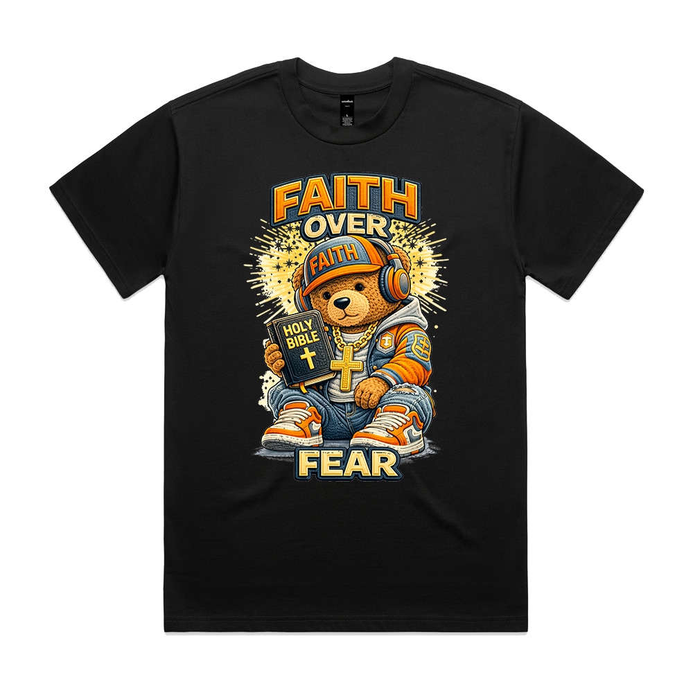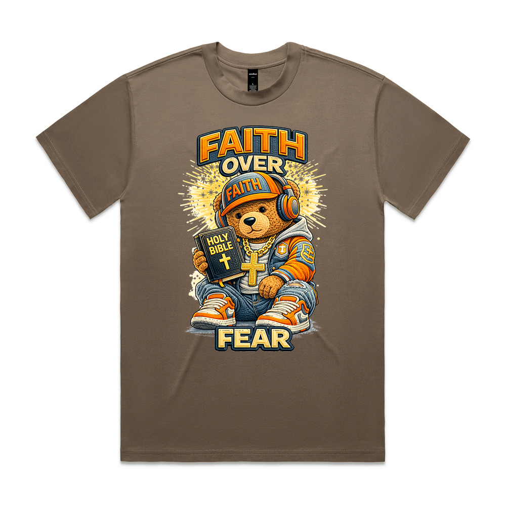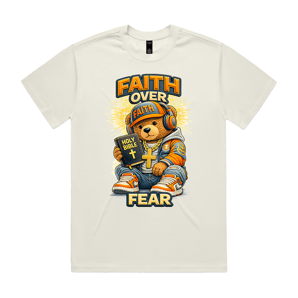 Our Blessed Bear Range Faith over Fear Printed on As Colour Heavy Tshirts, Oversized