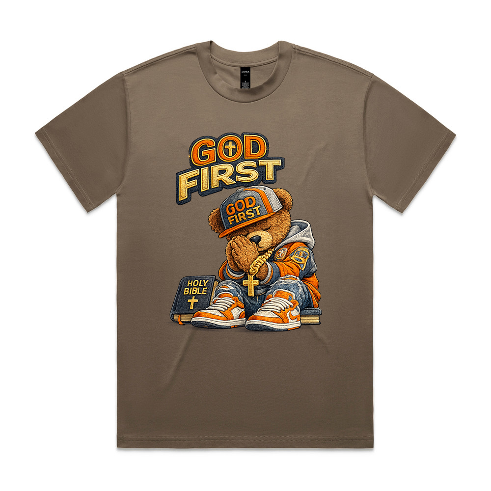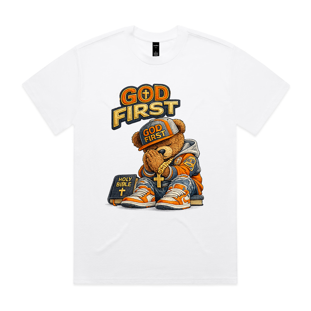 Our Blessed Bear Range God First Printed on as Colour Heavy Tshirts, Oversized